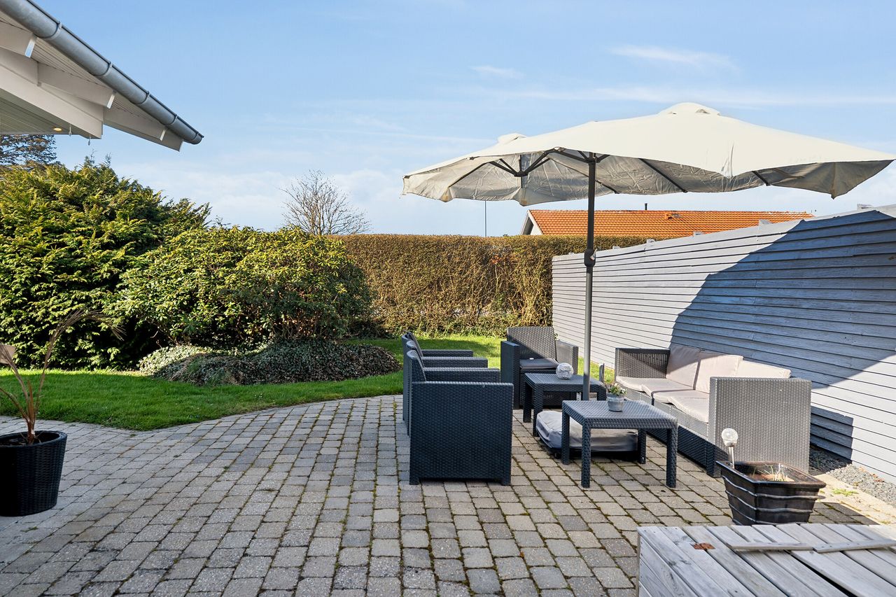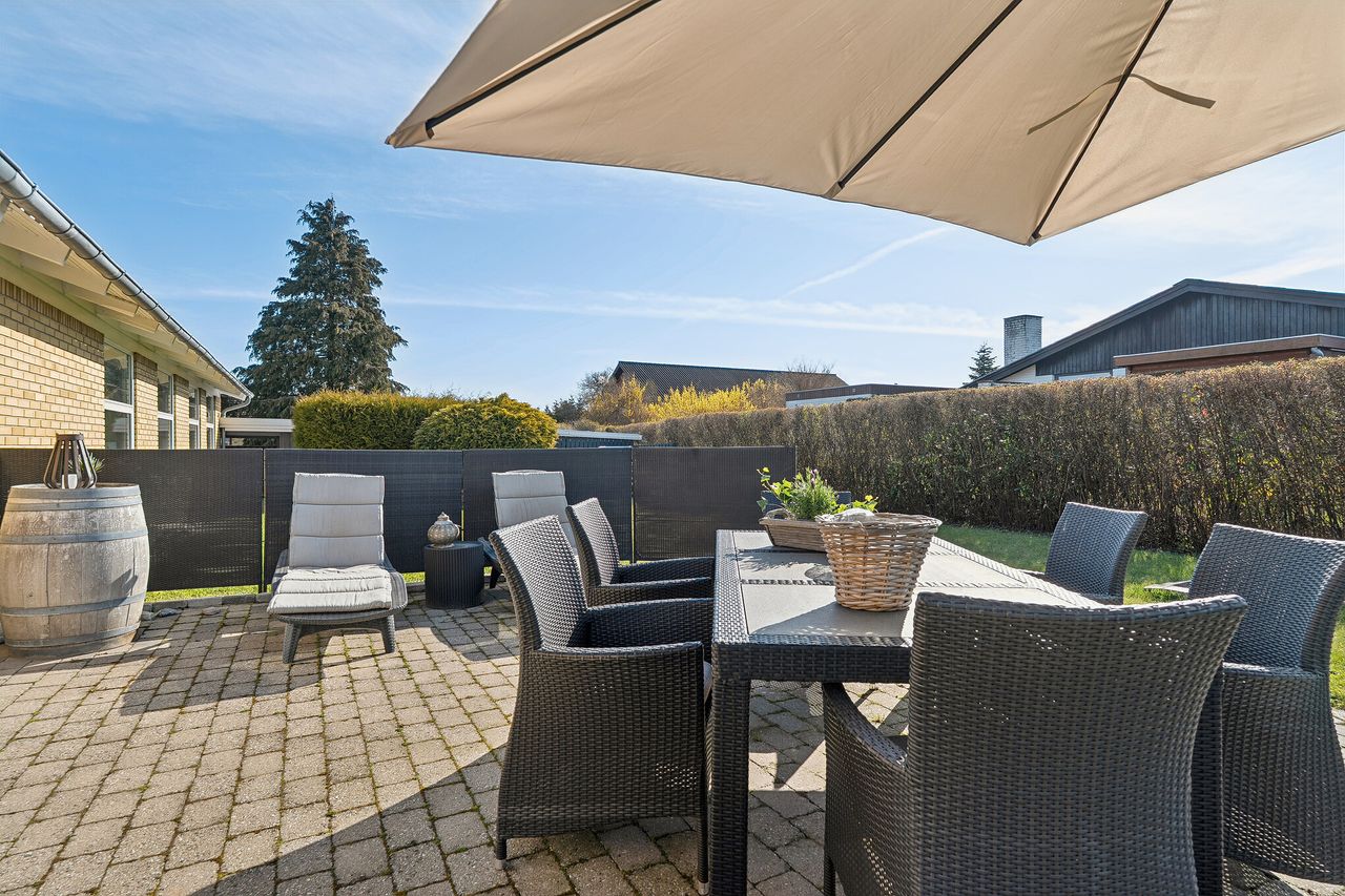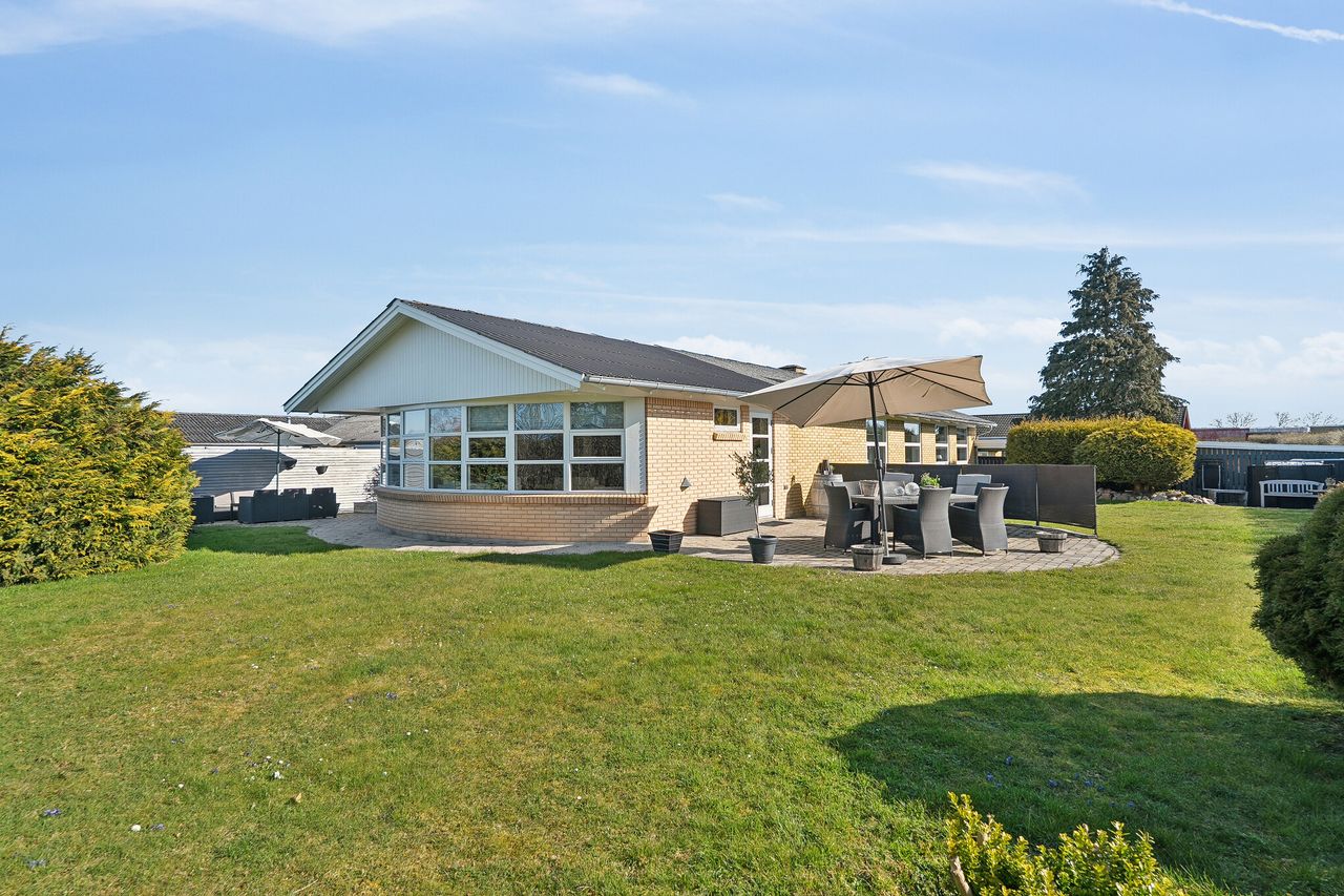 Ejendommen er opført i gule mursten med en spændende tilbygning. Udover boligen er her carport med udhus samt hyggelig og ugeneret have med flere hyggekroge og terrasser.