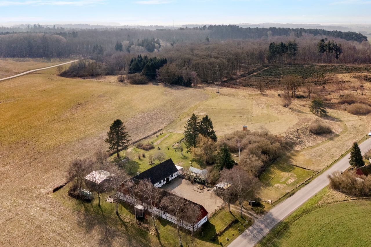 Ejendommen strækker sig over ca. 8,5 hektar og byder på en smuk og varieret natur med blandt andet lille skov, kuperede hestefolde, vandre/hundefolde samt egen sti på matriklen. Her er rigt dyreliv og masser af muligheder for både hestehold, jagt eller blot et liv i naturskønne omgivelser. En del af jorden er bortforpagtet.